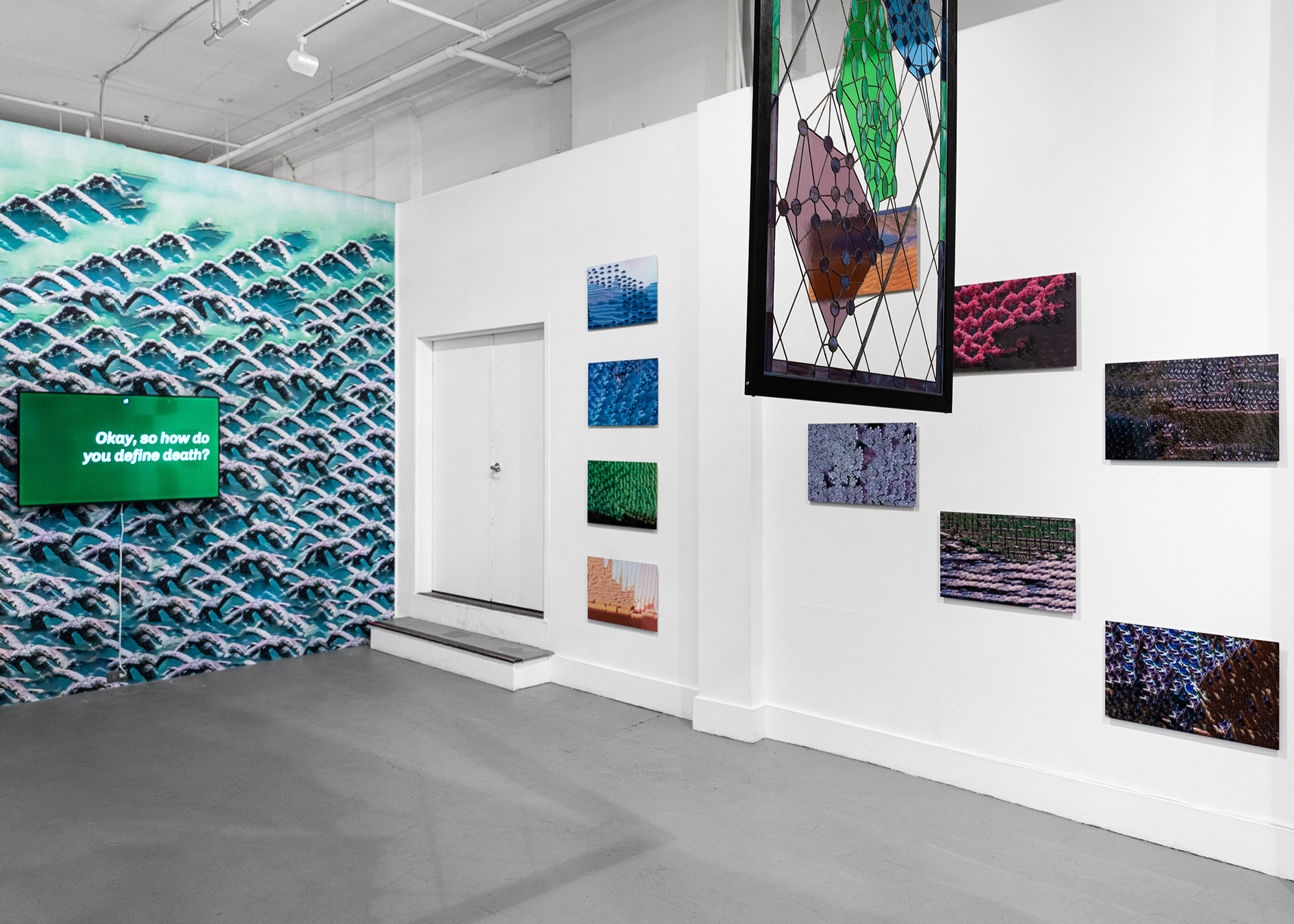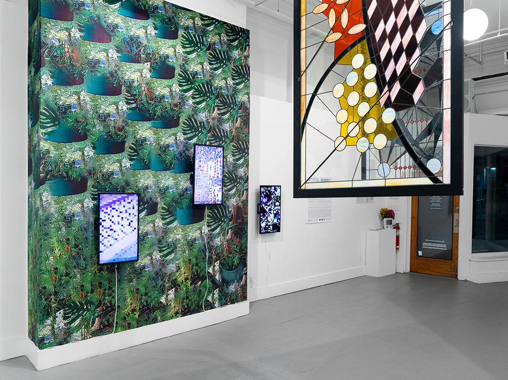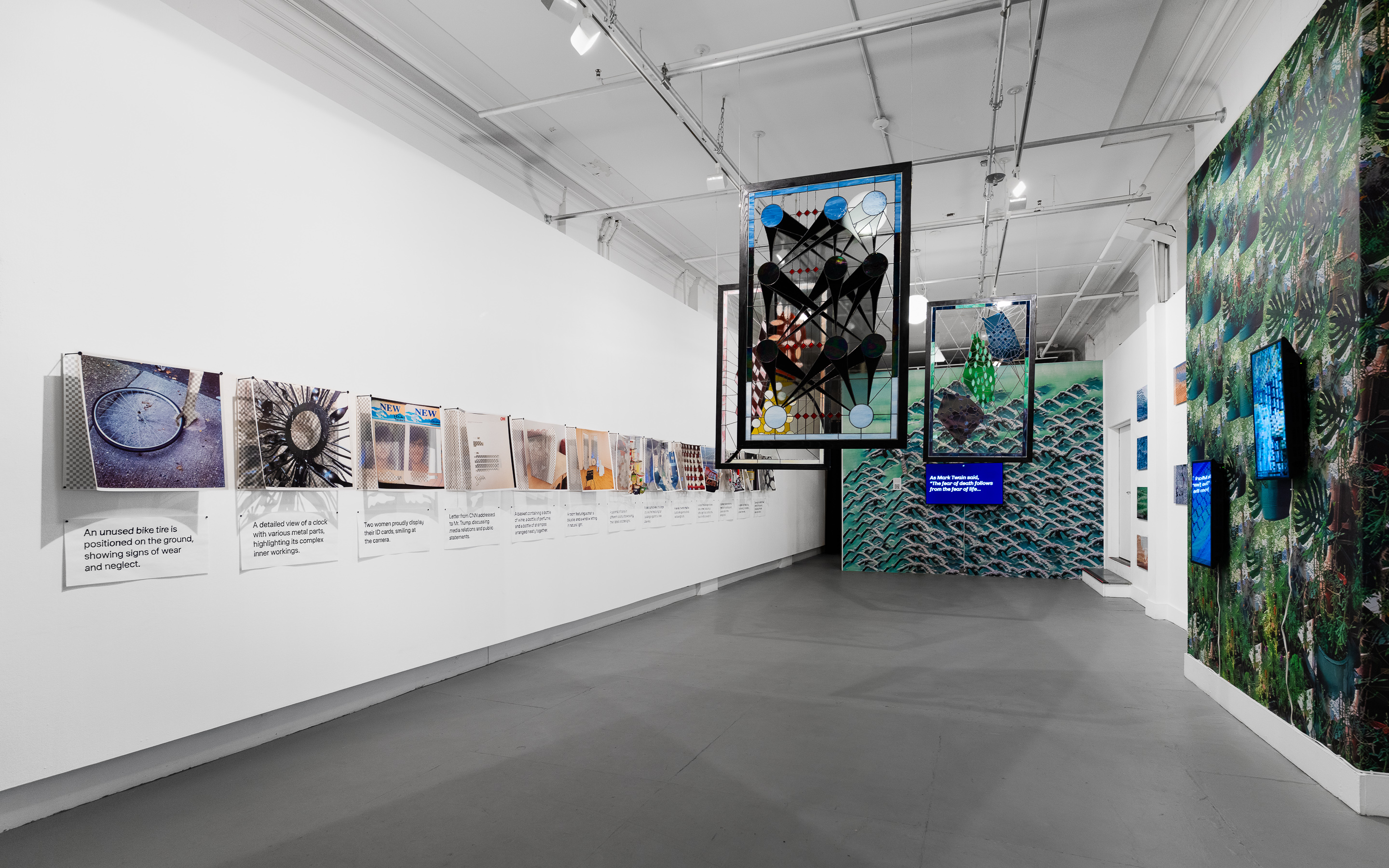 Artificial Abundance is a body of work which contrasts the escalating hype surrounding artificial intelligence with the realities of its implementation. Through a series of mixed-media artworks spanning digital and analog prints, stained glass, code-based animation, and interactive systems, the artist unpacks the requisite assumptions of limitlessness and omnipotence inherent to our current conceptions of AIâwhich stand in direct contrast to the finite, tangible resources necessary to support it.