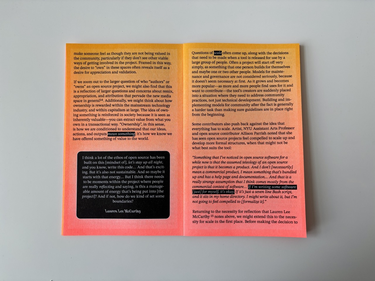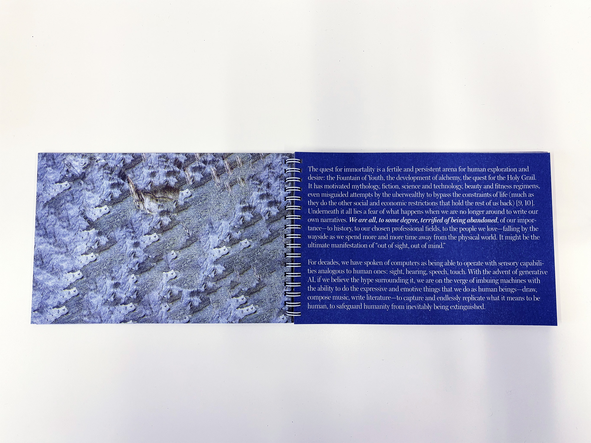 Special thanks to Dean Bjerke and Tracer Imaging for their assistance with printing. The work was on view in ART & CODE 8, a showcase for NEW INC & Rhizome Y8 Art & Code track members at Public Works Administration in New York, NY. It was also on view in November/December 2022 at Vox Populi in Philadelphia, PA.