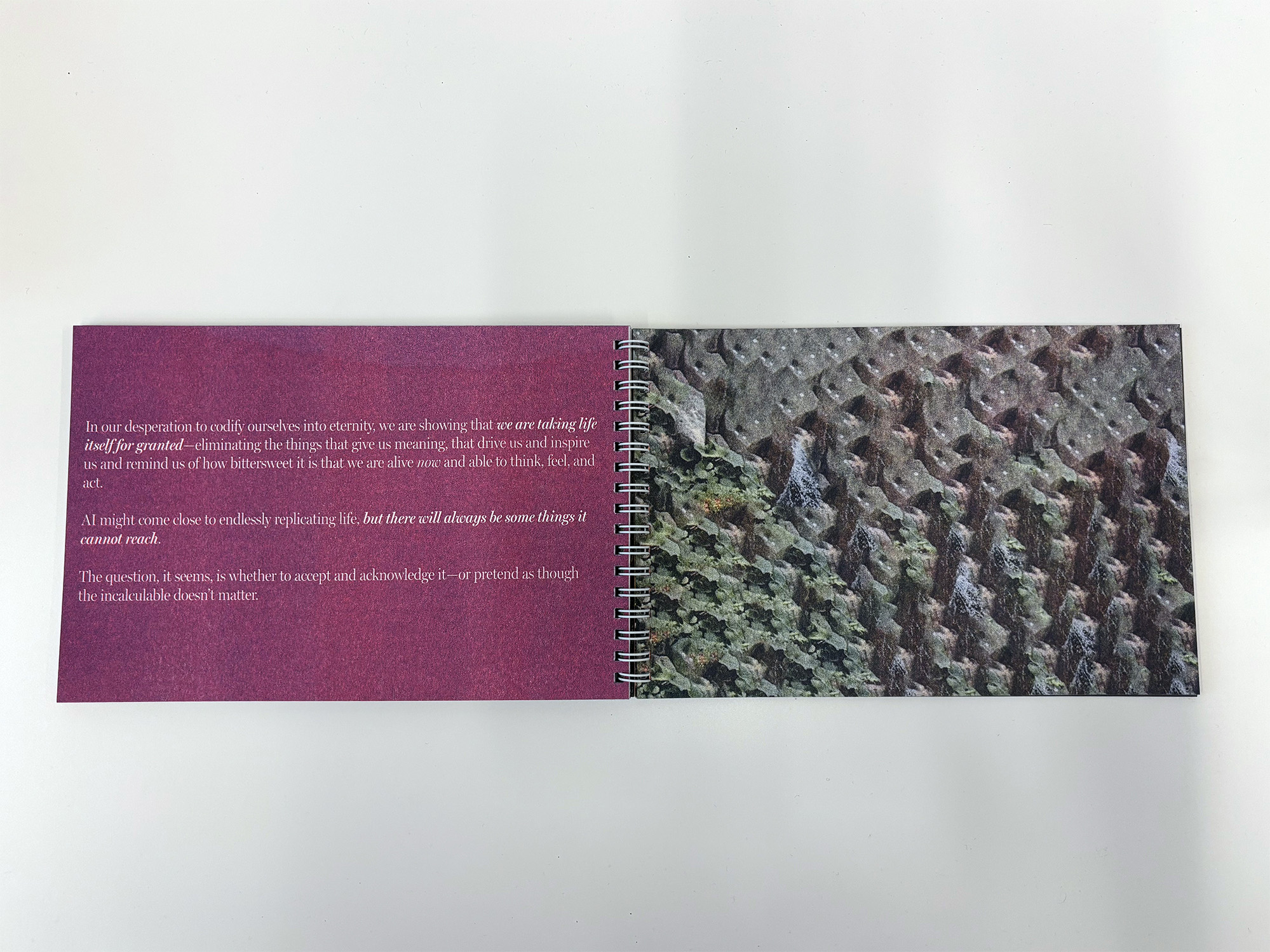 By pointing to constructed ideals concerning what AI is (and is not), I asks what we are implying about the more ineffable qualities of life, learning, and humanity â the things that cannot be encoded into 0s and 1s â when we are faced with the rush to classify, quantify, and automate our existence into infinity.