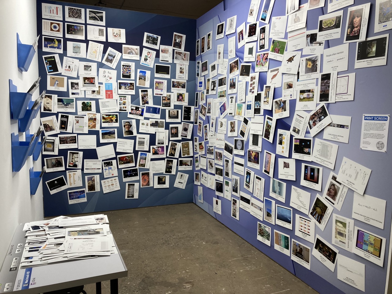 In the IRL format, prints of the screenshots are displayed within a physicalized âdesktopâ environment; visitors are invited to sort, categorize, and filter through the screenshots, placing them into an arrangement that makes sense to them in the space. By applying embodied practices of sorting, displaying, and arranging to a process where we often lose track of images as soon as we take them, the show asks us to reconsider our impulses to store every digital artifact we come acrossâand reminds us of the commonalities of interest and experience that might prompt us to save these images in the first place.