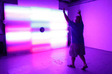 The installation is meant to be experienced alone. One at a time, viewers walk behind a curtain into a room containing a large wall of flashing red and blue lights. They hear the sounds of sirens and the voices of police telling them to put their hands up. Once they comply and their hands are in the air, a gunshot is heard, several blinding strobe flashes are triggered, and the noises disappear. The viewer is shaken by the sudden light and noise, and left in a chilling void of silence as they exit the space.