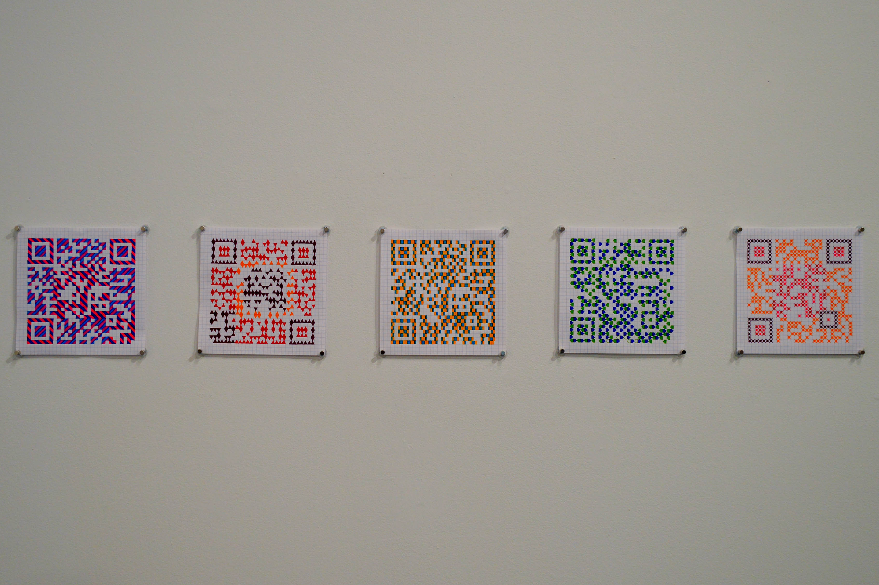 Unlike computer-generated codes, and maybe contrary to the intent of the format, the QR codes I create are fickle, inconsistent and do not always scan â frustrating the expectations of instant gratification associated with the form, and troubling the instinctual response we have developed to it in a very short period of time. They also often contain technical imperfections due to personal aesthetic preferences, distractions, miscounting, miscalculating, and other errors or choices that can only be described as human.